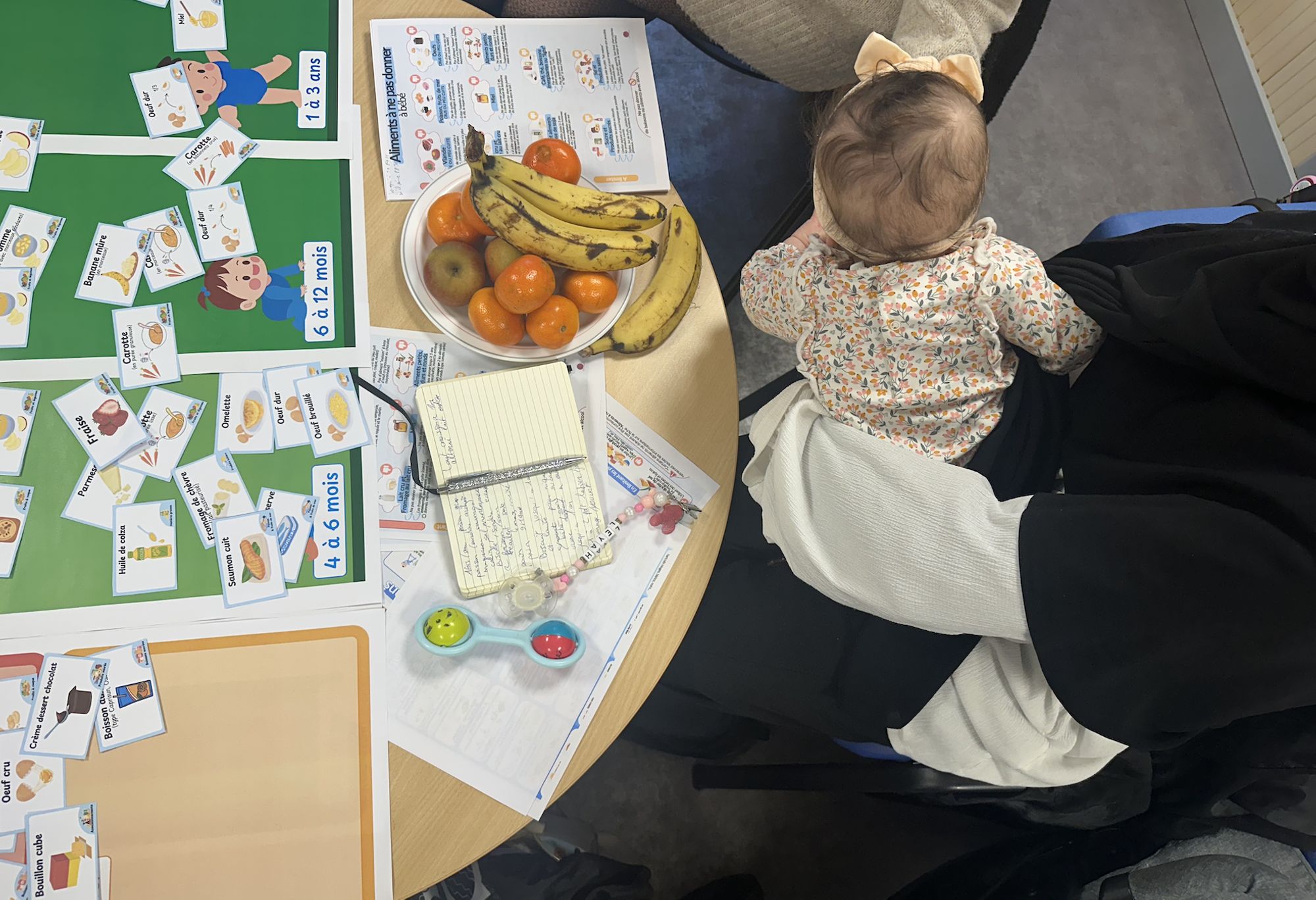 3 ateliers gratuits, pendant la grossesse, pour les enfants de 4 à 12 mois, et de 1 à 3 ans, animés par une diététicienne formée à l’alimentation périnatale et pédiatrique, à l’interculturalité et à la précarité ;